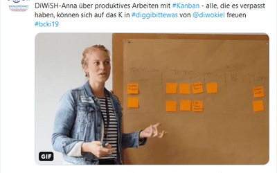Am Nachmittag führte dann Anna vom DiWiSH-Clustermanagement durch eine Session zu produktivem Arbeiten mit Kanban. Wie jeder Einzelne sein persönliches Kanban - ob beruflich oder privat - für sich nutzen und adaptieren kann und wie wir als Team mit Kanban arbeiten, war für viele Teilnehmer der Anstoß, auch selbst einen Versuch mit Kanban zur persönlichen Organisation und Visualisierung der Aufgaben zu starten.