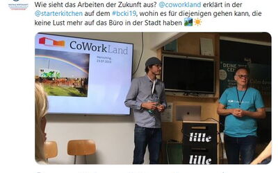 Sessions zu New Work? Nicht ohne CoWorking! CoWorkLand erklärte in den Räumen der StarterKitchen, wohin es für diejenigen gehen kann, die keine Lust mehr auf das Büro in der Stadt haben. Verknüpft wurde dieser Gedanke mit der Revitalisierung einzelner Städte auf dem Land und Entlastung der Pendlersituation.