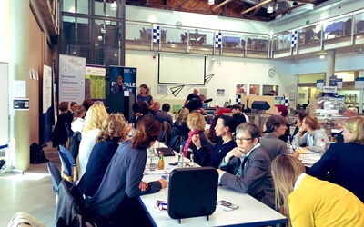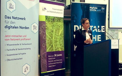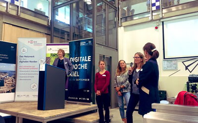Am Freitagnachmittag wurde die ehemalige Bootshalle am Ufer der Schwentine-Mündung und heutige Schwentine Mensa der Fachhochschule Kiel im Rahmen der Digitalen Woche zum Treffpunkt von Frauen unterschiedlicher Generationen - Unternehmerinnen, Studentinnen, Gründerinnen und solche, die es werden wollen. Unter dem Motto „Tech & Taff: frauen.unternehmen.digitalisierung“ hatten Doris Weßels, Regine Schlicht und das Organisationsteam zum Netzwerken, informativem Austausch mit Blick auf die sich aus der Digitalisierung entwickelnden Perspektiven und Mitmach-Angeboten eingeladen.