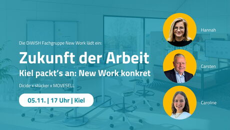 Genau darüber sprechen wir am 5. November bei unserem gemeinsamen New-Work-Fachgruppen-Event der DiWiSH mit stücker, Dicide und MOVESELL.