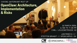 Einmal im Jahr veranstaltet die Fachgruppe zusammen mit dem Waterkant Festival Team von opencampus.sh das Coding.Waterkant (https://coding.waterkant.sh), in der sich die regionale und überregionale KI-Szene eine Woche lang im Rahmen von Workshops und gemeinsamer Arbeit an Projekten austauscht und vernetzt.