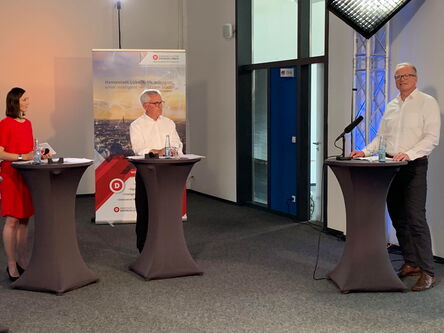 Jasmin Off und Gerald Goetsch aus der Chefredaktion der Lübecker Nachrichten moderierten den Hansetalk live aus den media docks. Lübecks Bürgermeister Jan Lindenau, der Chief Digital Officer Dr. Stefan Ivens und Dr. Jens Meier, Geschäftsführer der Stadtwerke Lübeck Gruppe, gaben zunächst einen Überblick über den Stand der Digitalisierung in der Hansestadt.