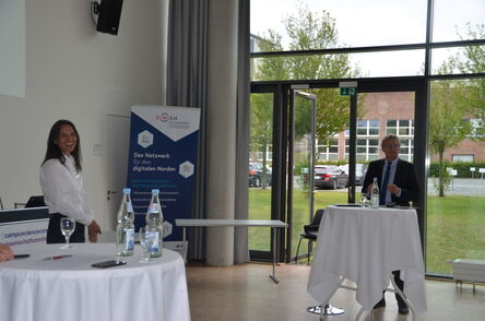 Neben dem Einblick in die Unternehmen stand das Abschlussgespräch der #hiergehtwas-Kampagne zwischen Dr. Bernd Buchholz und DiWiSH-Leiter Dr. Johannes Ripken an. Hier geht’s zum Interview.