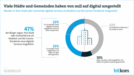 Die Corona-Pandemie zwingt die öffentliche Verwaltung zur Digitalisierung – diesen Eindruck hat die Mehrheit der Bevölkerung. Zwei von drei Bundesbürgern (66 Prozent) meinen, dass die Krise die Digitalisierung der Verwaltung beschleunigt. Das ist das Ergebnis einer repräsentativen Umfrage im Auftrag des Digitalverbands Bitkom unter mehr als 1.000 Personen ab 18 Jahren in Deutschland. Demnach hat fast die Hälfte der Verwaltungen (47 Prozent) seit Ausbruch der Pandemie neue digitale Angebote für Bürger eingeführt. Jeder fünfte Bundesbürger (22 Prozent) hat diese neuen Angebote bereits genutzt, 25 Prozent hingegen noch nicht. Jeder Zehnte (10 Prozent) hätte sich als Reaktion auf die Pandemie neue digitale Angebote gewünscht, wurde an seinem Wohnort jedoch enttäuscht. 43 Prozent wissen gar nicht, ob es vor Ort überhaupt neue digitale Verwaltungsleistungen gibt oder haben daran kein Interesse. „Viele Städte und Gemeinden haben im Zuge der Corona-Krise von null auf digital geschaltet und im Rekordtempo Schriftformerfordernisse gestrichen, digitale Anträge bereitgestellt und die Bürger von der Pflicht befreit, vor Ort zu erscheinen. Das kommt in der Bevölkerung gut an“, sagt Bitkom-Hauptgeschäftsführer Dr. Bernhard Rohleder. „Politik, Wirtschaft und Kommunen müssen jetzt über die nächsten Schritte sprechen und die Digitalisierung verstetigen.“