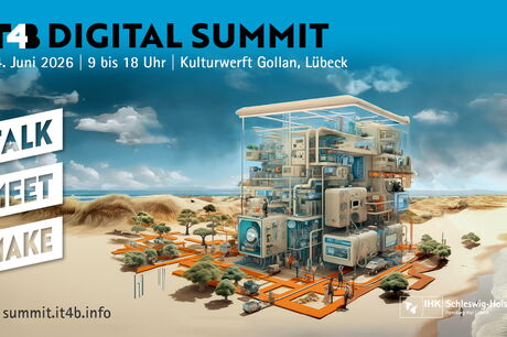 Der IT4B Digital Summit ist eine feste Größe im digitalen Veranstaltungskalender im Norden: Am 24.06.2026 warten wieder diverse spannende Sessions, Panels, Pitches und Austeller in der Lübecker Kulturwerft Gollan – und auch die DiWiSH Stage wird wieder ein fester Bestandteil des Summits sein. Hier haben unsere Mitglieder die Möglichkeit, ihr Know-how in spannenden Vorträgen zu präsentieren und sich mit anderen Expert*innen der Branche zu vernetzen.
