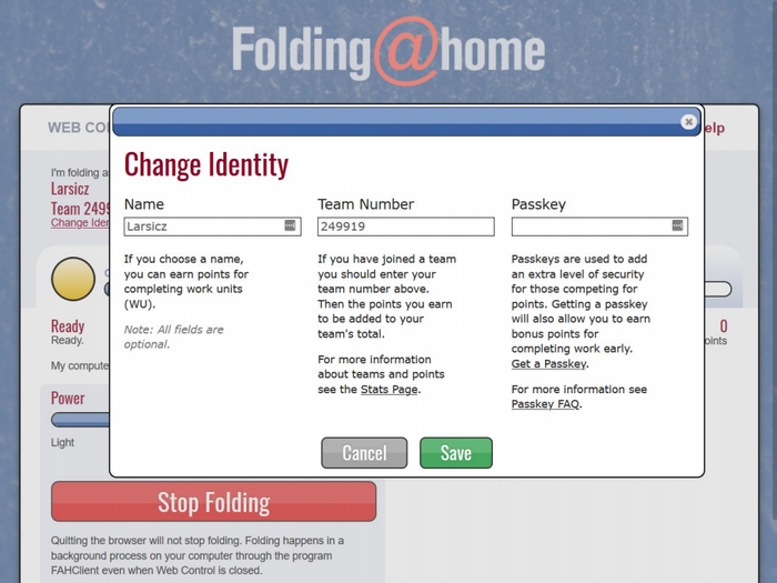 Die Software läuft im Hintergrund mit der jeweils gewünschten Intensität und kann jederzeit pausiert werden. Durch eine Web-Konsole erhält man einerseits Kontrolle über den Prozess und andererseits eine Auswertung der bereits geleisteten Rechenarbeit. Es gibt natürlich auch ein Ranking der fleißigsten „Folder“.