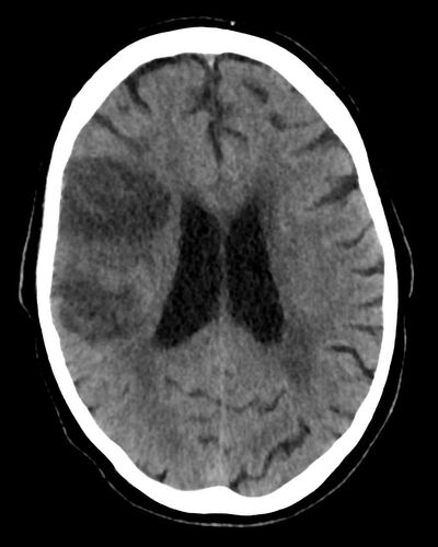 CT-Aufnahmen des Gehirns von Personen mit Schlaganfall: Hirninfarkt infolge eines Gefäßverschlusses. © Klinik für Radiologie und Neuroradiologie