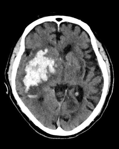 CT-Aufnahmen des Gehirns von Personen mit Schlaganfall: Hirnblutung. © Klinik für Radiologie und Neuroradiologie -