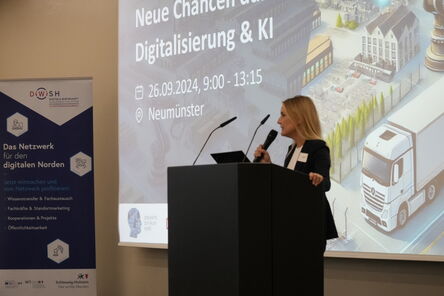 Ein weiterer wichtiger Bestandteil der Veranstaltung war das Grußwort von Staatssekretärin Julia Carstens, das die Bedeutung der digitalen Transformation für die Region Schleswig-Holstein unterstrich. Sie betonte die Notwendigkeit, Unternehmen durch gezielte Maßnahmen und Programme in diesem Prozess zu unterstützen.