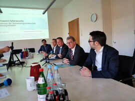 " Während die Hintergründe der bisherigen Fälle noch von Polizei-Experten untersucht und darum keine Einzelheiten bekannt gegeben werden, gehen Land und Wirtschaft jetzt in die Offensive: Zusammen mit Lars Müller, dem Vorsitzenden des Vereins Digitale Wirtschaft Schleswig-Holstein (DiWiSH), dessen Fachgruppenleiter für IT-Sicherheit, Andreas Sellin, und Kiels IHK-Hauptgeschäftsführer Jörg Orlemann gab der Minister heute den Startschuss für den "Servicepoint Cybersecurity".
