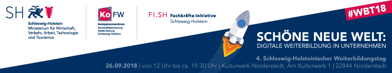 Der Tag bietet den Rahmen für interessierte Bürger/innen sowie insbesondere auch für Vertreter/innen von Unternehmen, Verbänden und Institutionen aller Coleur, Anregungen und Impulse zur Begegnung und Mitgestaltung des technologischen Wandels aufzunehmen, einzubringen und zu diskutieren. Das Wirtschaftsministerium Schleswig-Holstein und das Kompetenzzentrum Fachkräftesicherung und Weiterbildung (KoFW) laden als Veranstalter herzlich dazu ein. Der 4. Schleswig-Holsteinische Weiterbildungstag findet im Rahmen des bundesweiten "Deutschen Weiterbildungstages 2018" statt, der in diesem Jahr unter dem Motto "Weiter bilden - Geselschaft stärken!" steht.