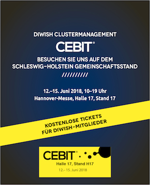 Sichern Sie sich Ihr kostenloses CEBIT-Ticket und besuchen Sie uns auf dem Schleswig-Holstein Gemeinschaftsstand in Halle 17, Stand 17.
