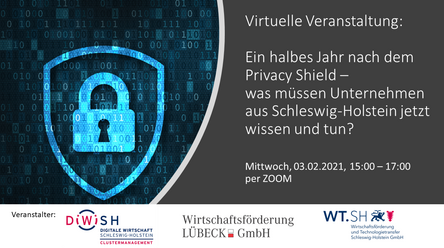Gemeinsam laden DiWiSH, WTSH und Wirtschaftsförderung Lübeck am 3. Februar von 15 bis 17 Uhr zur Online-Veranstaltung mit dem Thema „Ein halbes Jahr nach dem Privacy Shield – was müssen Unternehmen aus Schleswig-Holstein jetzt wissen und tun?“. Bei dieser Veranstaltung möchten wir einen Überblick über den aktuellen rechtlichen Status Quo geben und intensiv beleuchten, wie Unternehmen mit der Situation konkret umgehen und umgehen sollten. Wir werden versuchen, konkrete Handlungsempfehlungen für Unternehmen zu formulieren und werden dazu viele Experten in einem vielfältigen Programm zusammenbringen.