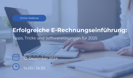 In unserem kostenlosen Webinar erfahren Sie, welche Maßnahmen Sie jetzt ergreifen sollten, welche Softwarelösungen am besten geeignet sind und wie der digitale Rechnungsprozess reibungslos funktioniert. Wir bieten Ihnen einen praxisorientierten Fahrplan, um die E-Rechnung einfach, schnell und ohne umfangreiche IT-Kenntnisse in Ihre bestehenden Unternehmensprozesse zu integrieren.