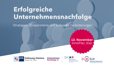 Am 13. November widmet sich die Veranstaltung „Erfolgreiche Unternehmensnachfolge – Strategien, Stolpersteine und kulturelle Veränderungen“ im Rahmen der Nachfolge-Initiative des echten Nordens dem zentralen Thema der Unternehmensnachfolge. Unter dem Motto „Ich gebe nicht auf. Ich gebe weiter.“ beleuchtet die Initiative, wie Unternehmer:innen in Schleswig-Holstein den Übergabeprozess erfolgreich gestalten können.